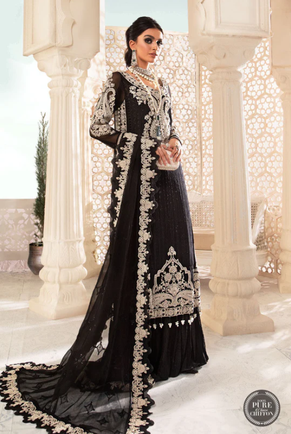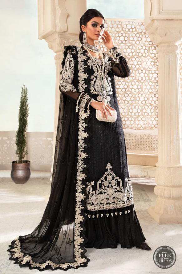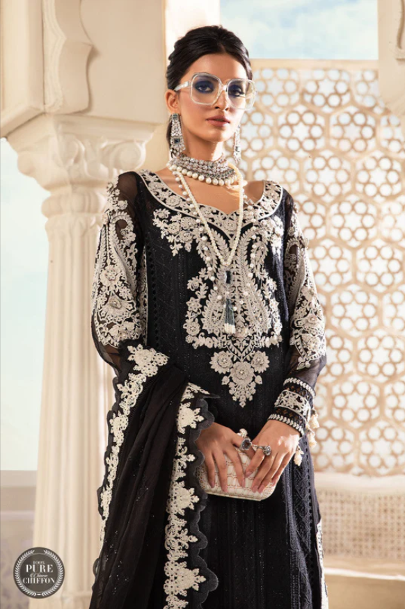 - Embroidered Pure Chiffon Side Panel Left Right with 3D Flowers