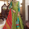 - Embroidered Organza Ghera Motif with 3D Flowers